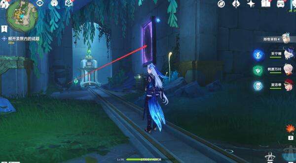 4、接着来到一个紫色的画框旁边,我们进行交互会传送到另外一个空间。