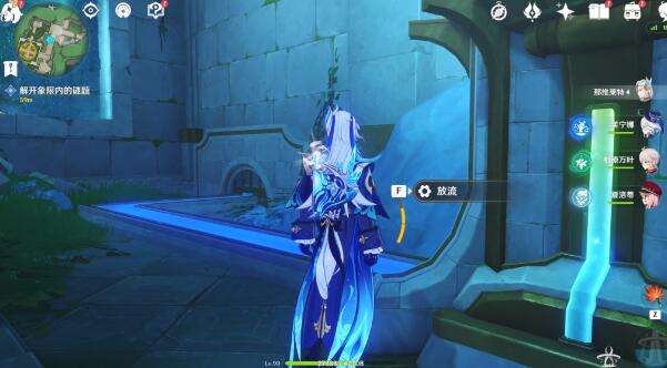 3、来到遗迹内部可以卡到还有一个机关,连接通路疏通水道。