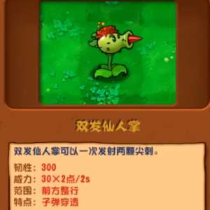 双发仙人掌可以一次发射两颗尖刺,范围为前方整行。
