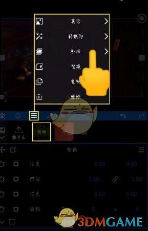 3、添加好之后点击视频上方【三横图标】。