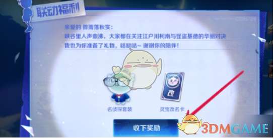 2、然后点击弹框中的【收下奖励】,然后就能获得名侦探柯南联动限定灵宝装扮【名侦探套装】x1和灵宝改名卡x1。