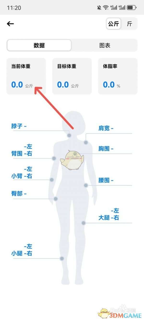 3、进入体重数据记录页面,输入体重数据,点击完成按钮即可