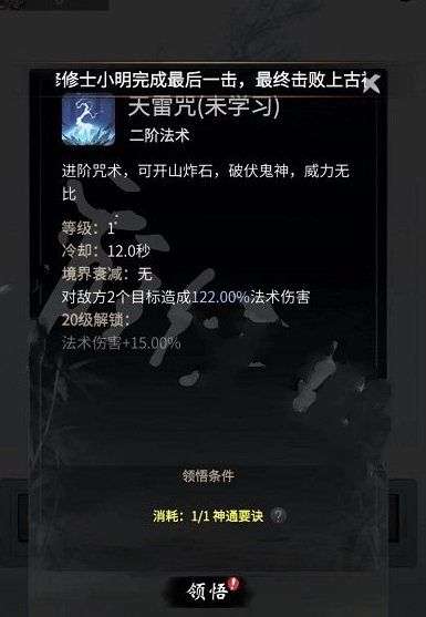 消耗心得和残篇可提升神通等级,提高神通效果。