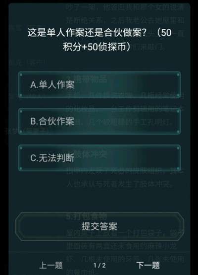 这是单人作案还是合伙做案?A.单人作案 B.合伙作案 C.无法判断