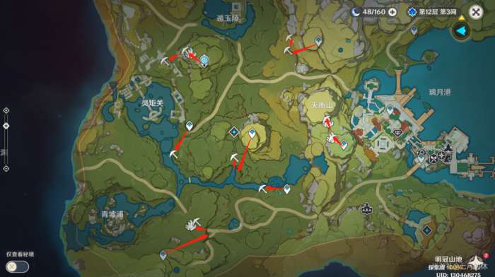 3. 水晶矿点位,如果出现魔晶矿,会出现多个水晶矿。