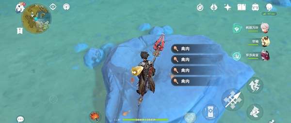 3.【甜甜花】在庆云顶神像下面小亭子旁边,飞过去的时候可以顺便下落攻击旁边的两只鹤(2+2禽肉),这样禽肉就够了