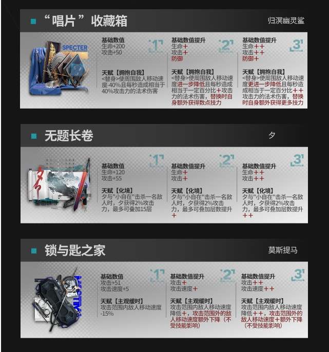 以上就是关于《明日方舟》模组升级系统可升级模组一览的全部内容了,希望可以帮助到有需要的玩家了解具体的模组信息。