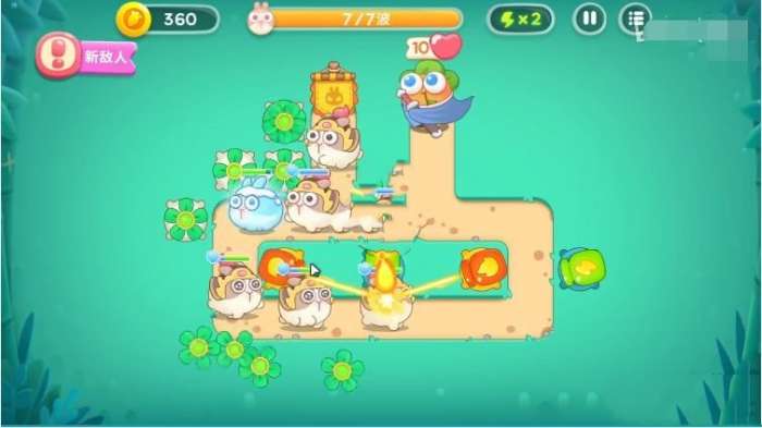 5、紧接着就是最后一波,在这里尤其要小心冰冻兔,万一它控住很多炮塔就难办了。