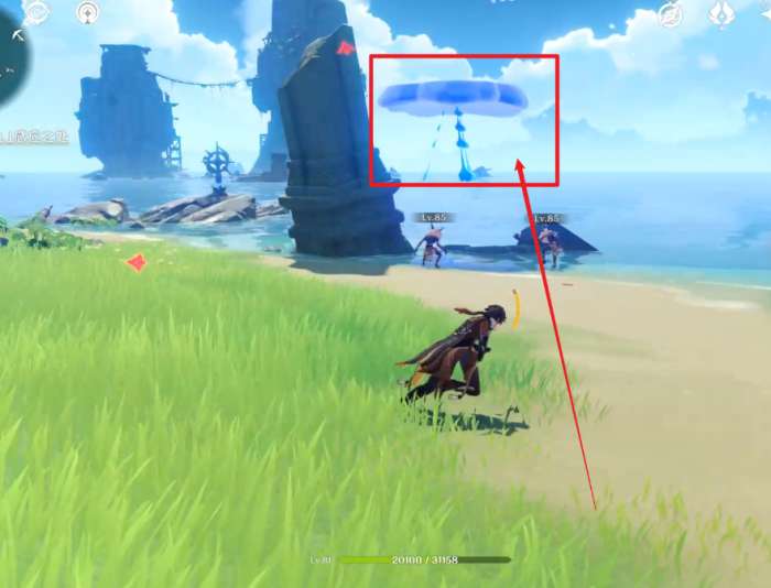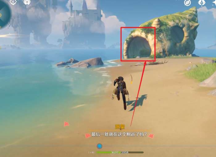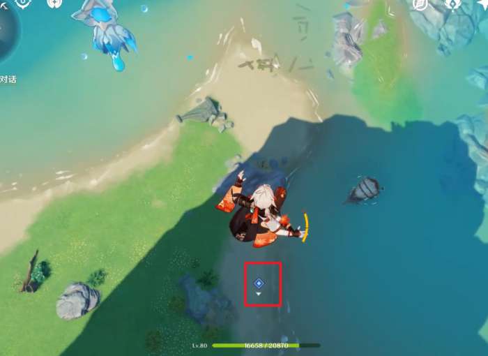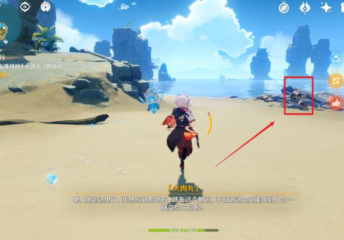 11.在附近海滩寻找「大肉丸」的碎片,在两个丘丘人附近