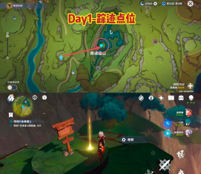 前往降诸魔山图示位置大齿轮上方,观察后发现未来星的踪迹