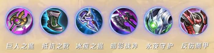 紫色打野刀+冰痕+韧性鞋+黑切+永夜守护+反甲