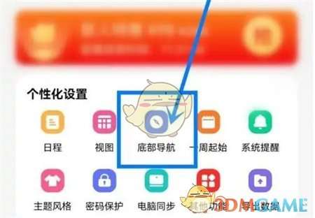 2、进入个人界面,找到【个性化设置】-【底部导航】点击打开。