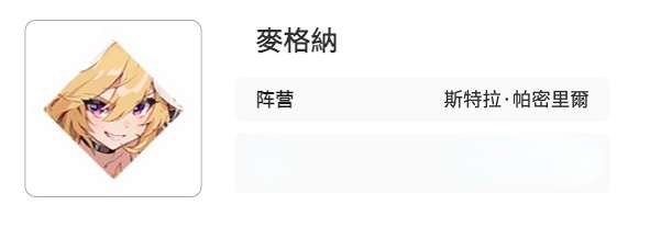 第二位麦格纳,同样是一位坦克角色,角色非常是词条,两张比较重要的卡牌都是主导,在肉鸽玩法中可打出不错模式,主导卡的装备使用上,非常吃灵光一闪质量,单卡数值比较一般,建议加入整队反击流,不然角色拿到的分值不会特别高。