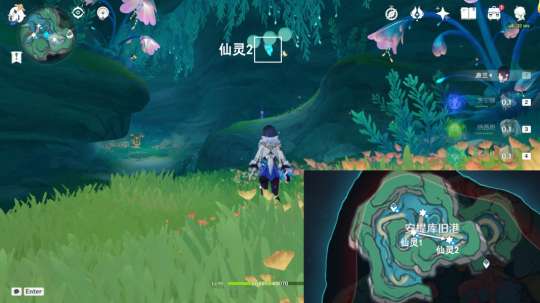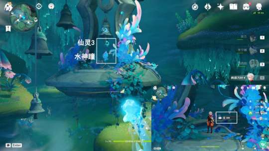 观看动画,飞跃至对面(仙灵3位置),获得水神瞳①
