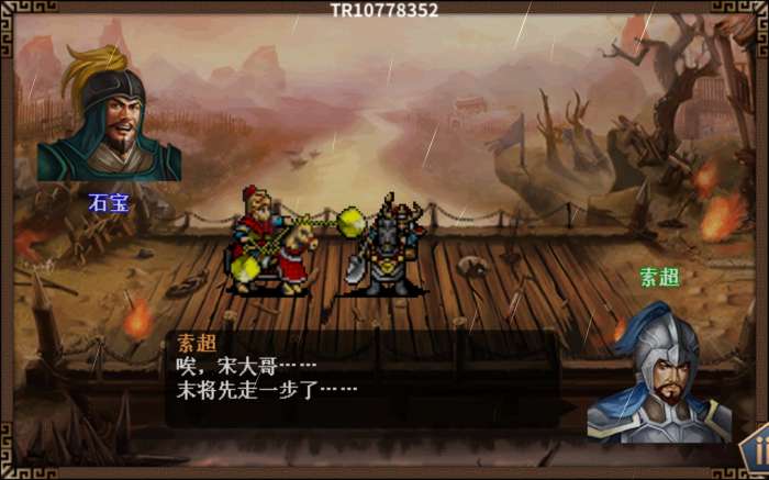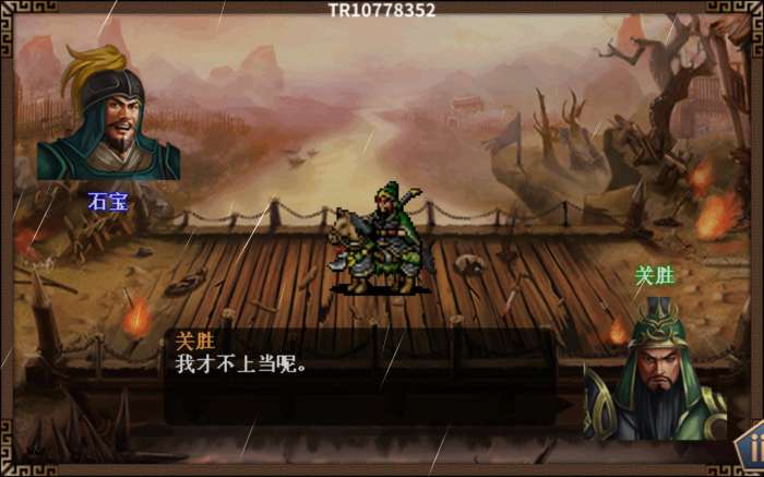 剧情流程:敌军被我四面包围,典型的攻城战。本关难度不大,不想索超死,就别触发单挑。击退方天定获得宝物-朱雀宝玉、索超死不死都能获得宝物-护心镜。