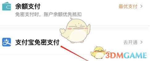 3、选择【支付宝免密支付】选项,点击进入即可开通。