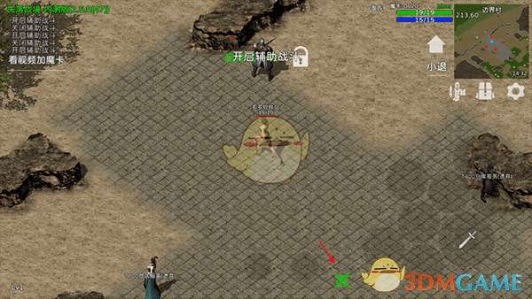 3、点击下方箭头按钮可以开启辅助战斗,也叫自动寻路战斗