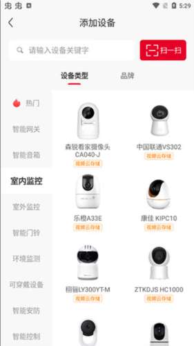 2、选择室内监控,点击设备;