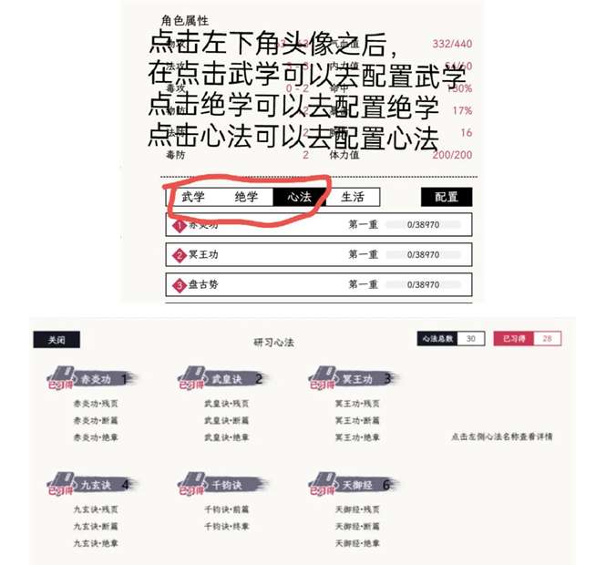 其中前四个和第六个心法都可以在藏经塔里面找到