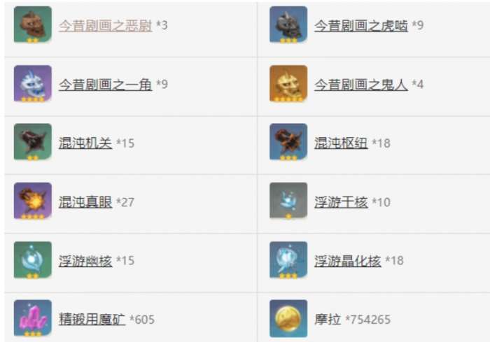 1-90级需要的材料: