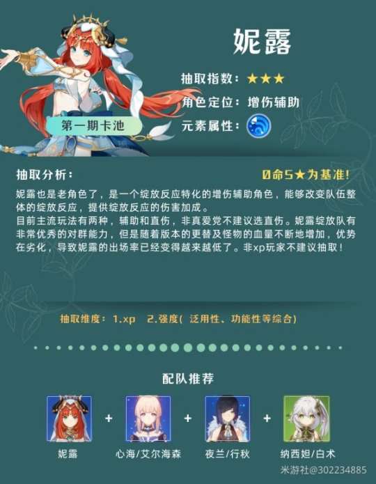 上半卡池的两位角色都属于比较单一的体系角色,娜维娅是目前的最强岩c,妮露是妮绽放核心,一个具备出色的对单能力,一个具备优异的对群能力,但众所周知主c基本都被龙仆爆完金币了,所以上半总的来说是不建议抽取的