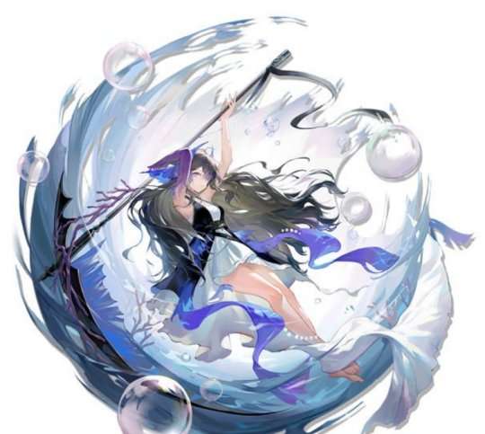 精二的立绘呈现了双腿并拢的姿势,衣服的丝绸材质与下摆组成了类似鱼尾的形状。