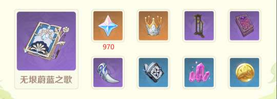 ● 完成不同的活动,可以获得「诗歌会热度」。当诗歌会热度达到一定值时,将会获取无垠蔚蓝之歌(活动绝版武器)、智识之冕、活动专属武器精炼材料等奖励。
