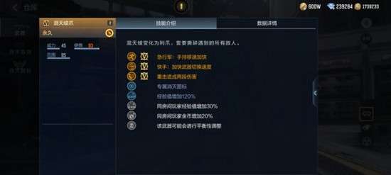首先我们可以看到在技能方面拥有急行军和快手两个基础技能,但是混天绫爪有意思的点在于,其重击会进行一次特殊的二段攻击。即两只棱爪分别计算一次伤害,在攻击节奏方面完全一致,但是伤害会分两段,所以实战方面还是比较考验玩家的操作水平。