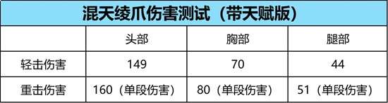 我们可以看到在数据测试方面,混天绫爪轻击伤害整体来说还是不错的,但是攻击速度方面是明显没有大多数近战武器快。而在重击方面,计算则是与其他武器不太相同,实战中命中敌方胸部时会造成80伤害,但是武器技能则将伤害进行分段表现,也就是实际对敌方造成160点伤害。