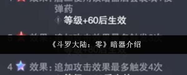 以上就是pk游戏网小编整理带来的斗罗大陆零暗器介绍,更多相关游戏攻略,请关注pk游戏网!