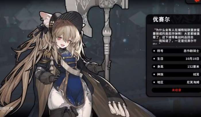 火环优赛尔是一名以物理单体输出为主的冰属性角色,职业设定为边防战士,擅长近距离作战。他手持巨斧,在战斗中展现出强大的近战压制能力,适合需要稳定单体伤害的阵容配置。作为火环中战力中等偏上的角色,优赛尔在面对高血量敌人或BOSS时能发挥出色表现,其技能连贯性强,操作反馈感优秀,是火环中值得培养的近战单位之一。