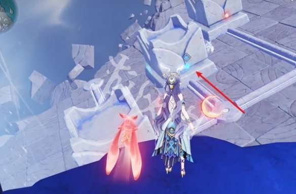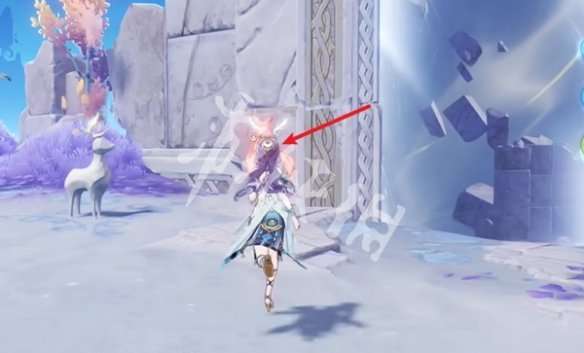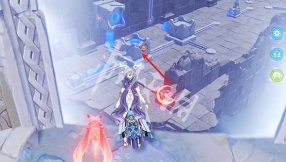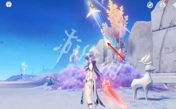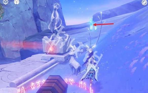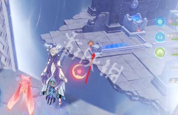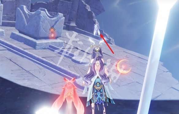 1、去触碰箭头处的红色月灵。