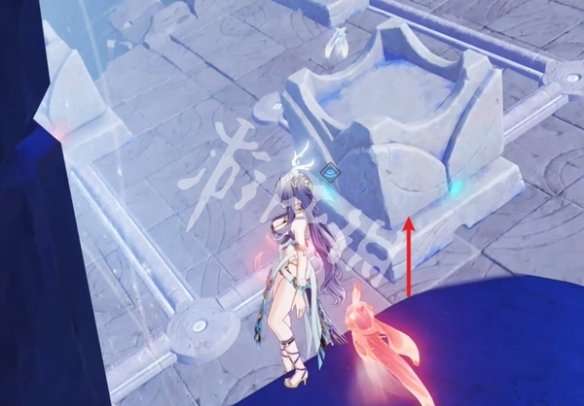 4、走到图中的位置,将箭头处的雕像拉过来,拉三次到镜子前即可。