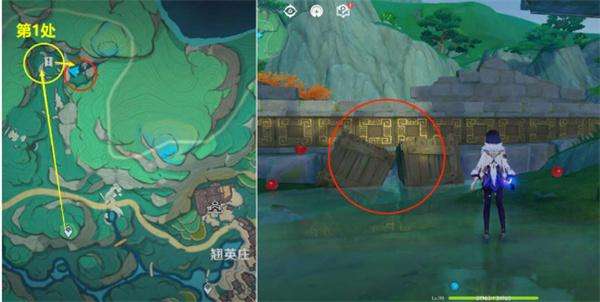 1、前往下图所示的翘英庄位置,靠近两个木箱触发剧情。