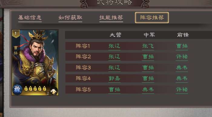 2.魏骑经典队:大营张辽+中军曹操+前锋许褚