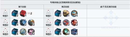 明日方舟铅踝精二专三材料需求一览: