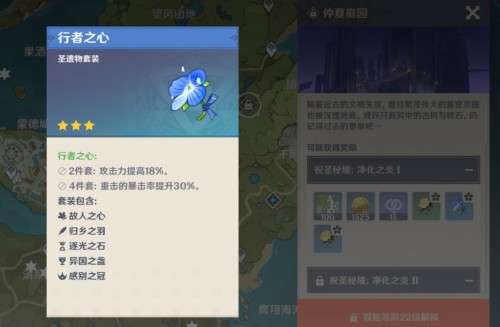 4、玩家可前往蒙德【仲夏庭园】秘境刷取行者之心,每次奖励领取消耗20树脂,还可以通过世界地图探索获取。