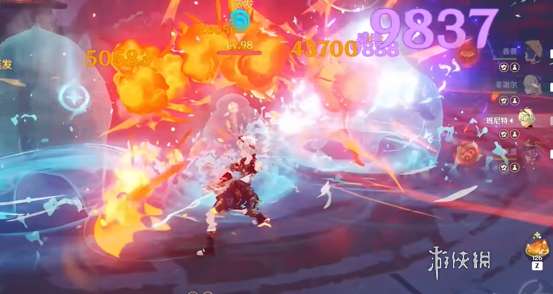 接着,使用班尼特的大招来为角色提供增加伤害效果,然后在班尼特大招范围内使用香菱和菲谢尔的大招以及元素战技。