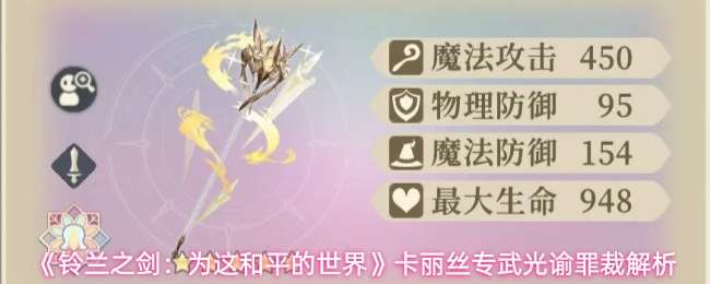 以上就是pk游戏网小编整理带来的铃兰之剑卡丽丝专武怎么样,卡丽丝专武光谕罪裁解析,更多相关游戏攻略,请关注pk游戏网!