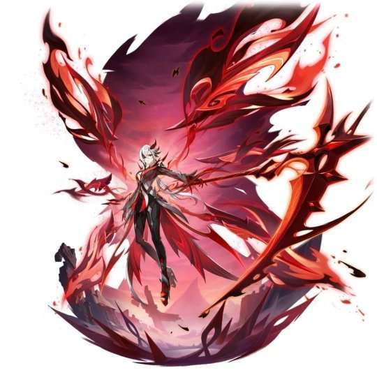然后是周本boss形态的立绘,第一眼看还以为是隔壁的凤凰,周围翅膀原来是不是那种带羽毛的设计。服装方面和公子一样也进行了升级,特别镰刀,一个横扫就能把旅行者给直接带到副本门口吧。