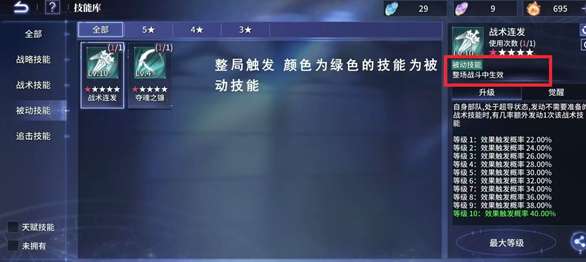 2、相同种类的技能所造成的相同技能效果无法叠加,例如2个战略技能的造成伤害增加效果,只取最大值生效