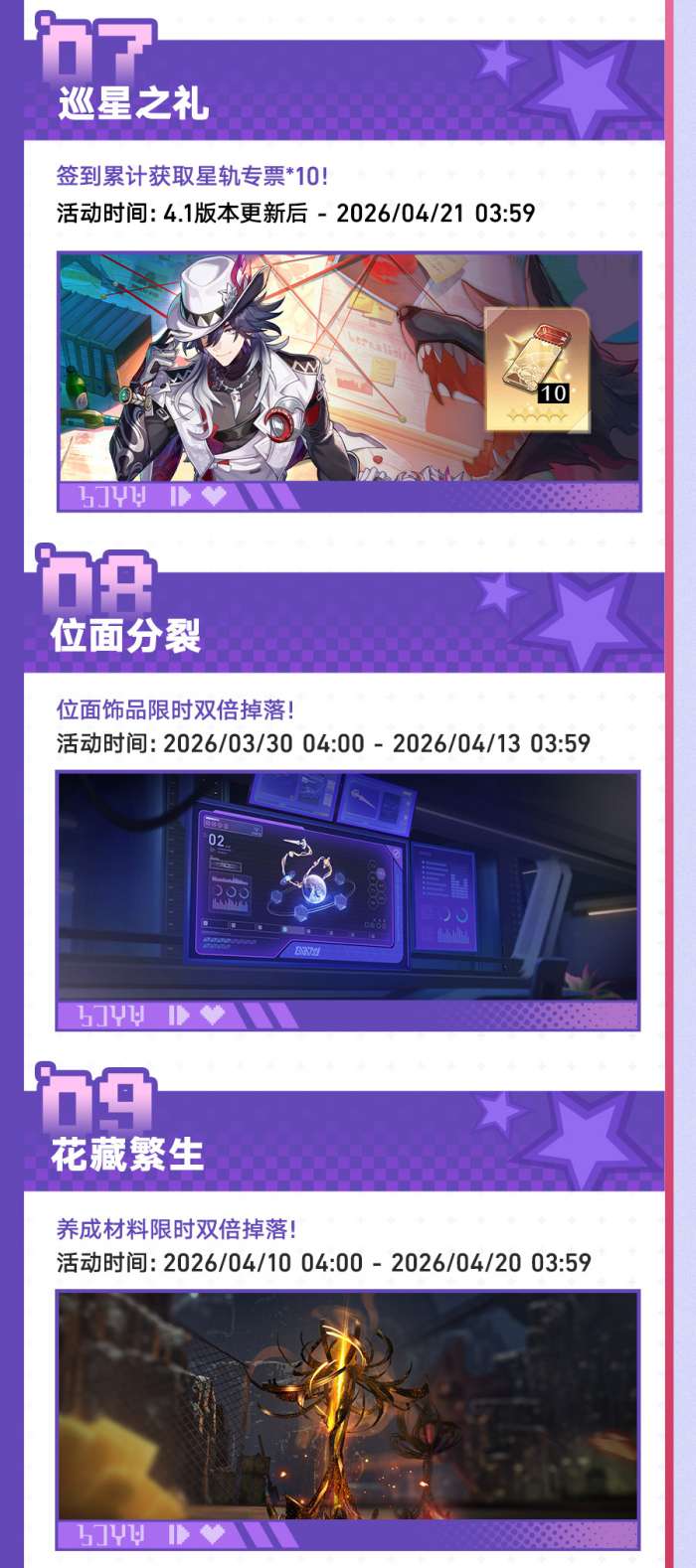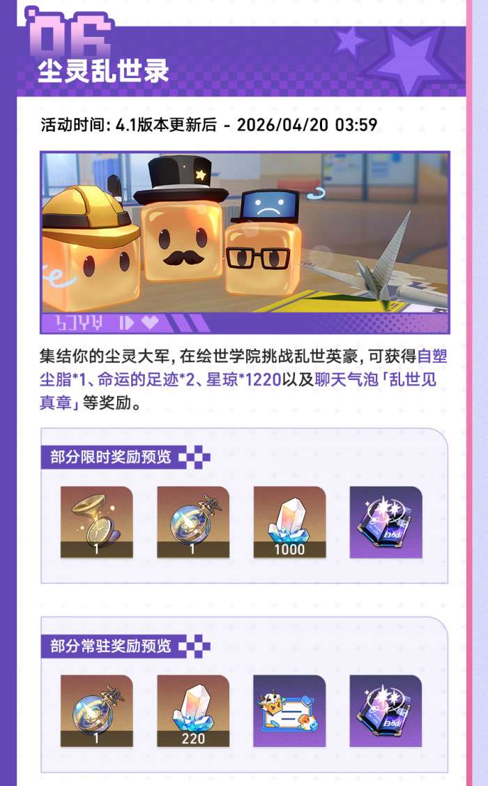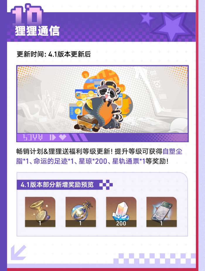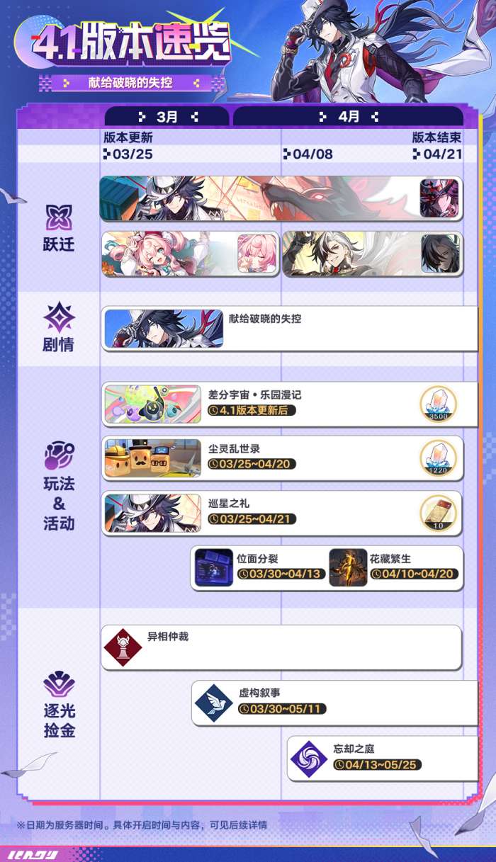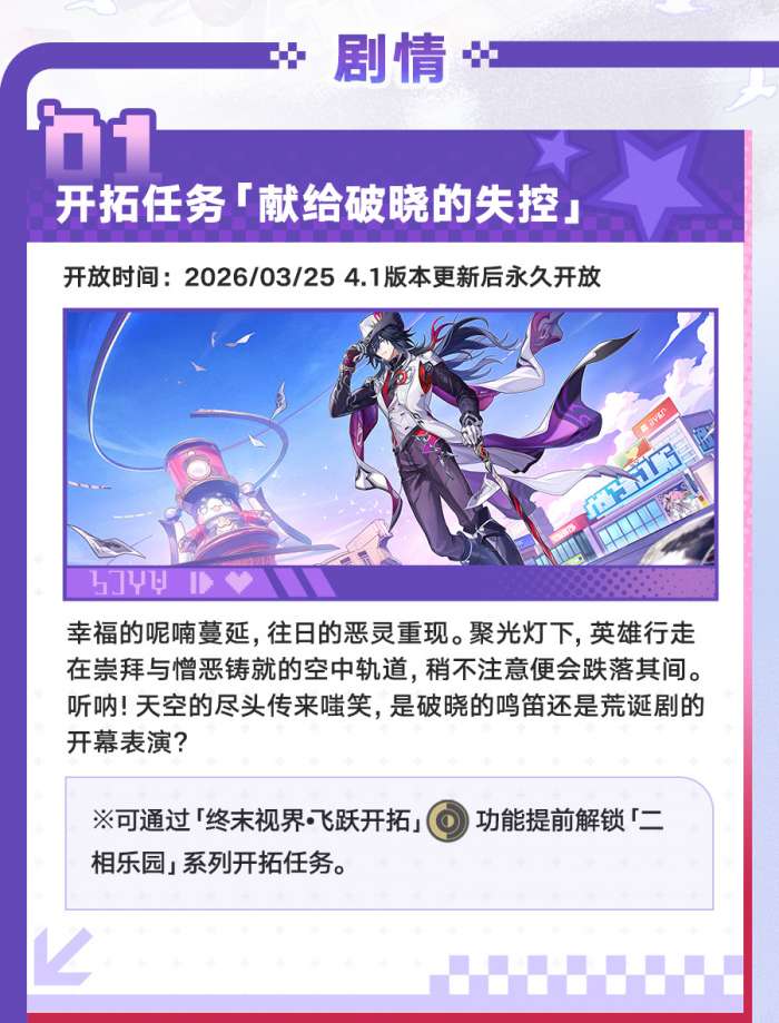软件提交 专题合集 热门手游崩坏:星穹铁道4.1版本有哪些更新,4.1版本「献给破晓的失控」专题展示页现已上线,一起看看新版本都有哪些内容吧!该版本的开放时间为2026年3月25日,一起来了解一下吧。