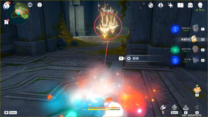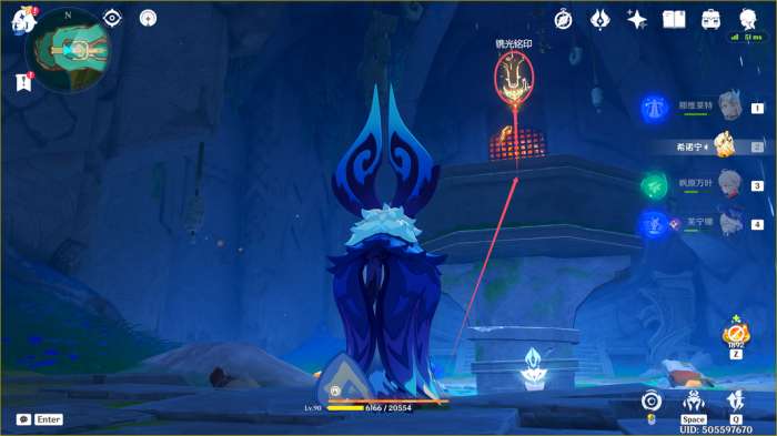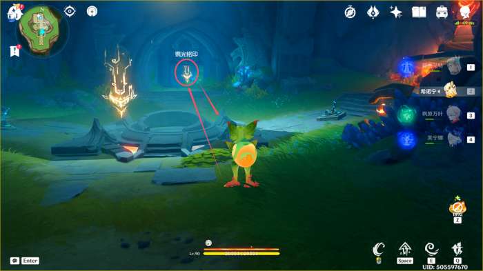 解决掉遗迹重机后,我们过去触碰第一个「镌光铭印」(同时,我们获得一个精致的宝箱)