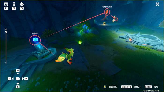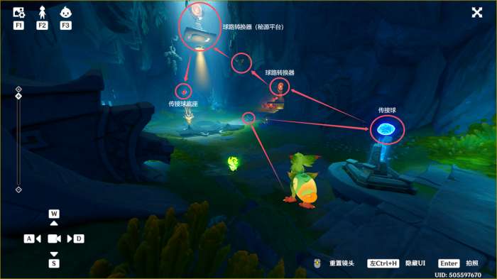 过完剧情后,我们先拉动拉杆,将红色「球路转换器」调整好;接着利用匿叶龙的能力,将蓝色「传接球」收取,对准红色「球路转换器」松开,将收取的蓝色「传接球」射出去;之后快速拉动机关,让红色「传接球」飞到秘源平台的红色「球路转换器」;等待其再次转换路线,飞到深处的红色「传接球底座」后,即可完成「传接球」解谜(还有一个更简单的方法,不过需要速度;先拉动机关,接着收取蓝色「传接球」,将其飞到秘源平台的红色「球路转换器」,之后等到其飞到深处的红色「传接球底座」即可)