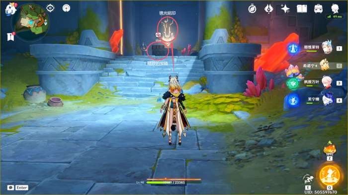 之后,我们与机关交互,将第一个「镌光铭印」放进来,即可获得一个珍贵的宝箱(同时,此处「镌光铭印」的解谜完成)