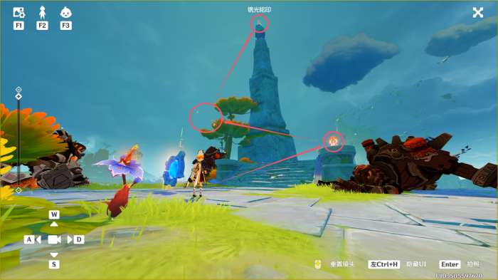 过完剧情后,我们看向正北方,先飞下去魂附鳍游龙的魂烛;接着撞破「游光靶标」,开启「游光靶标」挑战,沿着「游光靶标」出现的位置完成挑战