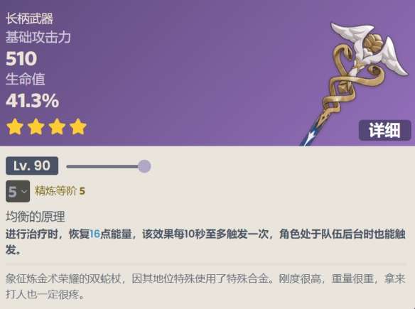 进行治疗时,恢复(8\10\12\14\16)点能量,该效果每10秒至多触发一次,角色处于队伍后台时也能触发。
