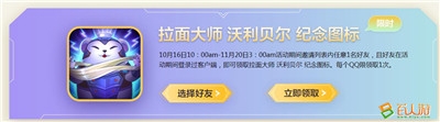 活动期间邀请列表内任意1名好友,且好友在活动期间登录过客户端,即可领取拉面大师 沃利贝尔 纪念图标。