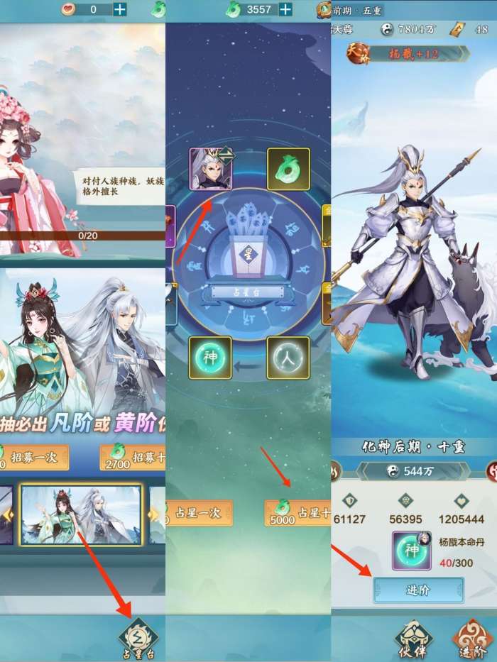 言归正传,我从昨天入坑,估计很多人像我一样手握巨款却两眼懵逼。其实,它的核心玩法就是一个:抽特定伙伴。没错,是特定的,不要想着把所有的伙伴抽出来,选定三个强力的就完事了。具体就是抽伙伴→伙伴进阶。