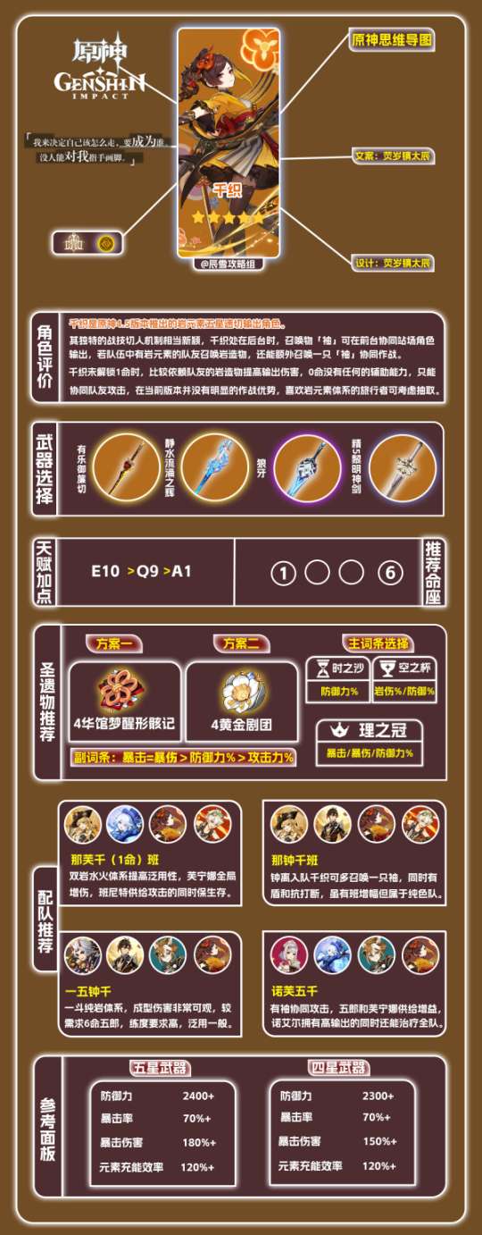 4.队伍搭配方面,千织默认0命,若有命座需求会额外标注(如配队一那芙千班);